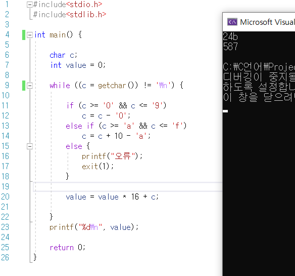 c언어 16진수를 10진수로 바꾸기
