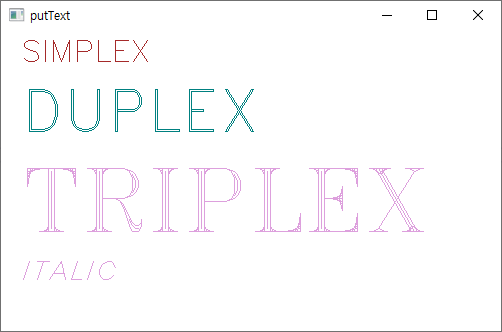 putText(image, "TRIPLEX", pt2, FONT_HERSHEY_TRIPLEX, 3, violet);