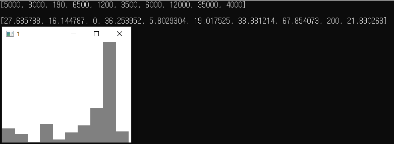 normalize(hist, hist, 0, 200, NORM_MINMAX ); //최소 190 을 0, 최대 35000을 200으로