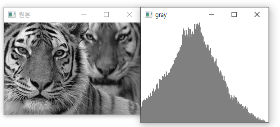 이미지를 그레이스케일로 바꾸고 histgram을 통해 그래프 살펴보기
