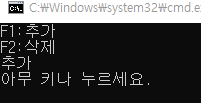 case ConsoleKey.F1: Console.WriteLine("추가"); break;