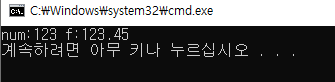 Console.WriteLine("번호:{0} 몸무게:{1}", num, weight);