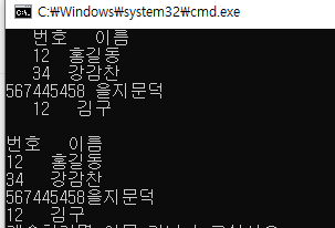 Console.WriteLine("{0,-5}{1,-5}", "번호", "이름");